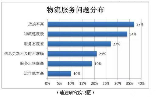 在快遞行業(yè)迅速發(fā)展的同時,也催生了很多問題,例如快遞貨物運行的速度太慢,服務態(tài)度差,貨物丟失等問題,根據(jù)物流的調查顯示,人們反應最多的是貨損率較高,占比37%,雖然從包裝到運輸已經極力避免貨物的損壞,但由于物流服務人員以及交通運輸?shù)雀鞣矫嬖?,貨物損壞仍會出現(xiàn),而且用戶心理出發(fā),一次貨物受損就可能由此引發(fā)對物流品牌的關注。