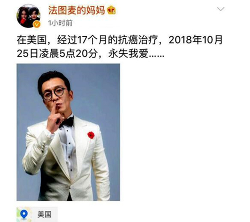 經(jīng)過(guò)17個(gè)月的抗癌治療,50歲的李詠于2018年10月25日在美國(guó)離開(kāi)了人間。妻子哈文四天后在微博發(fā)布了去世消息,“凌晨5點(diǎn)20分,永失我愛(ài)……”
