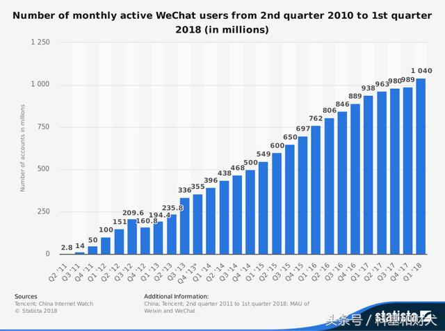 從當(dāng)前的用戶數(shù)量來(lái)看,微信以10億月活成為全球應(yīng)用第一梯隊(duì)。